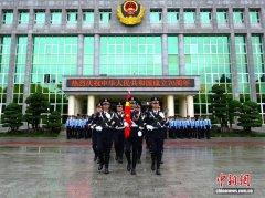 中缅边境云南瑞丽戍边民警举行国庆升旗仪式