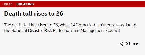 外媒:菲律宾地震已致26人死亡、147人受伤